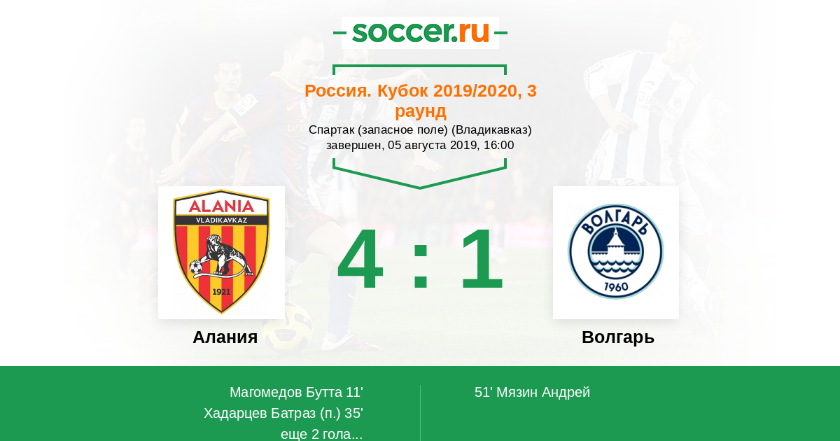 Протокол матча Алания против Волгарь