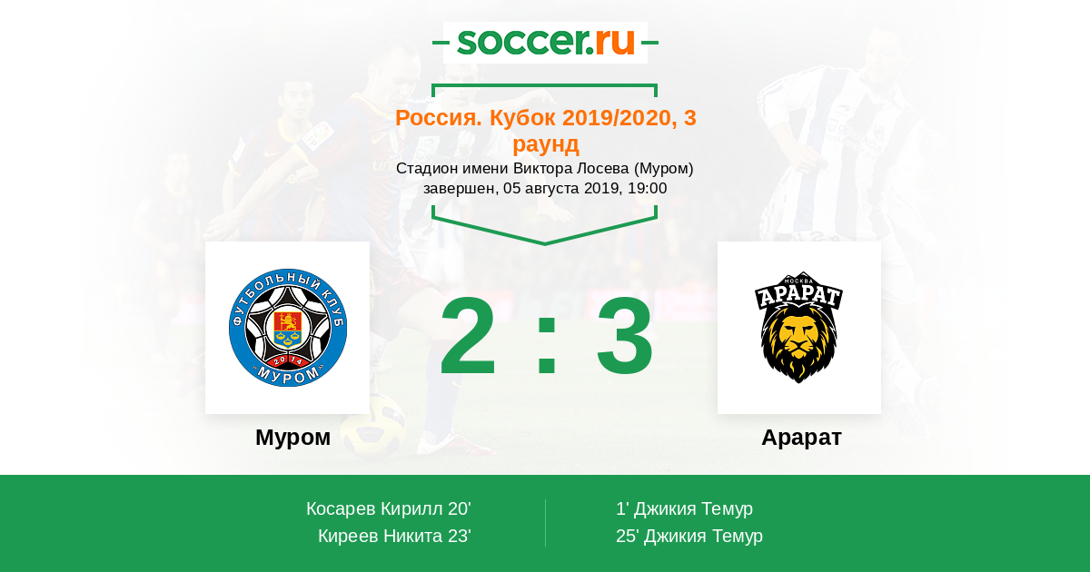 Протокол матча Муром против Арарат
