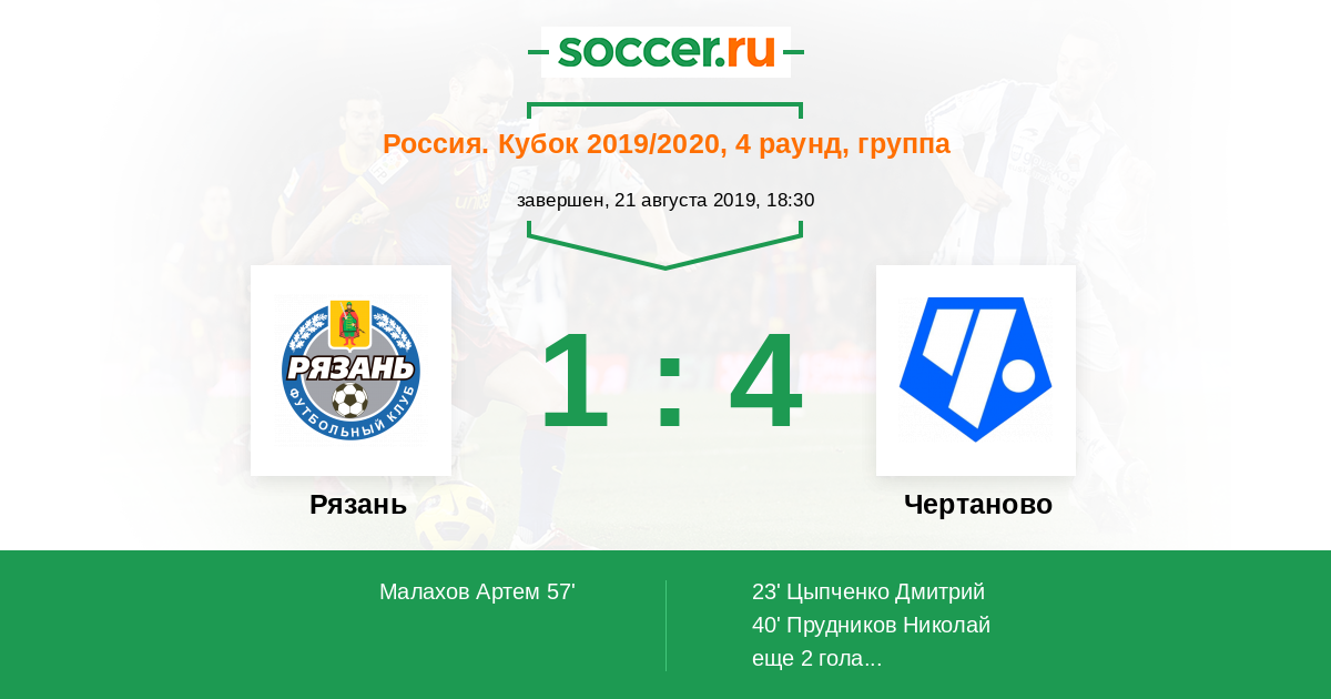 Протокол матча Рязань против Чертаново