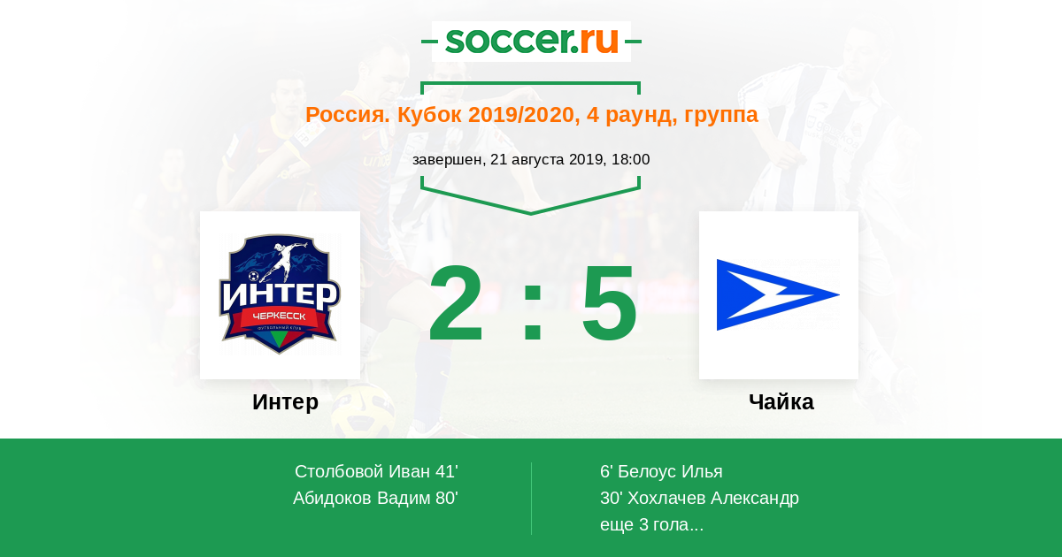 Протокол матча Интер против Чайка