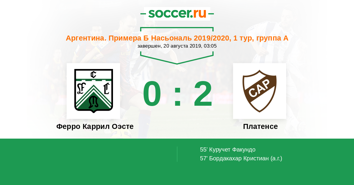Протокол матча Ферро Каррил Оэсте против Платенсе