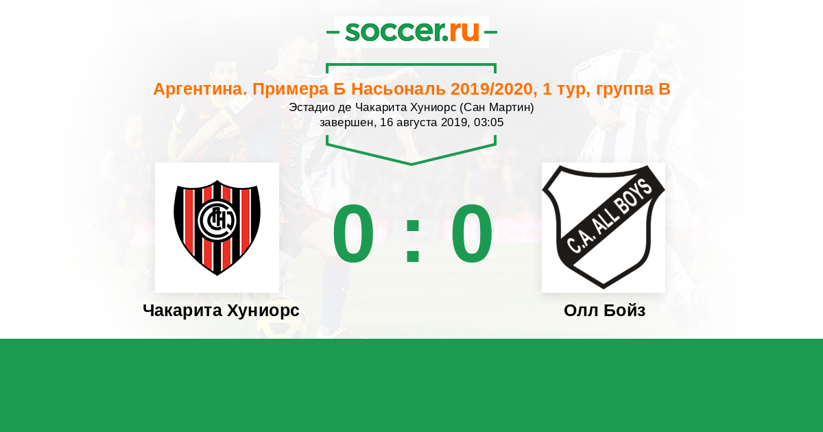 Протокол матча Чакарита Хуниорс против Олл Бойз