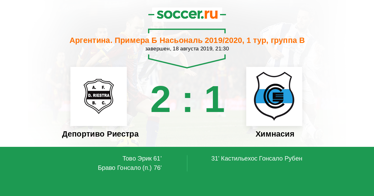 Протокол матча Депортиво Риестра против Химнасия