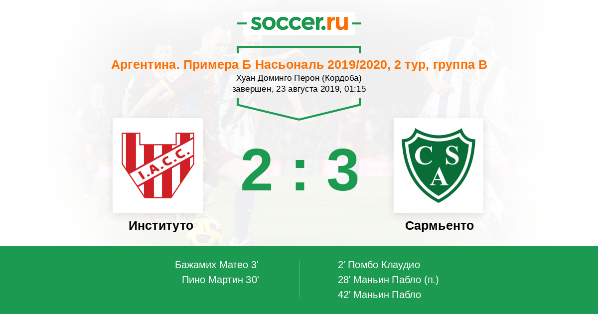 Протокол матча Институто против Сармьенто