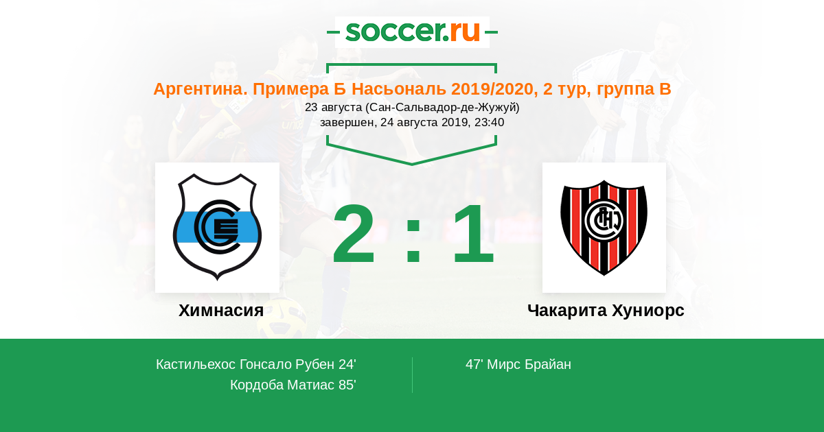 Протокол матча Химнасия против Чакарита Хуниорс