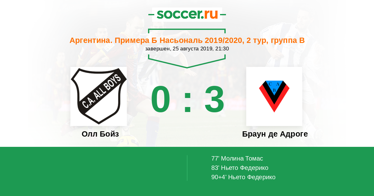 Протокол матча Олл Бойз против Браун де Адроге