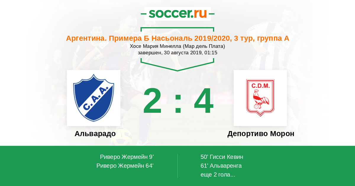 Протокол матча Альварадо против Депортиво Морон
