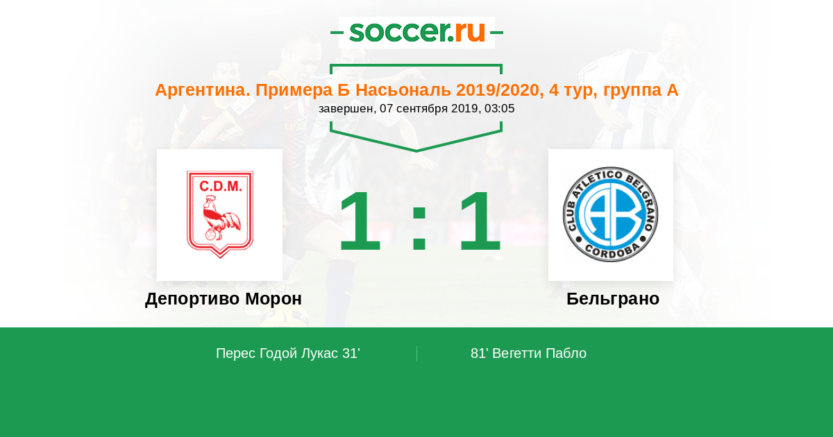 Протокол матча Депортиво Морон против Бельграно
