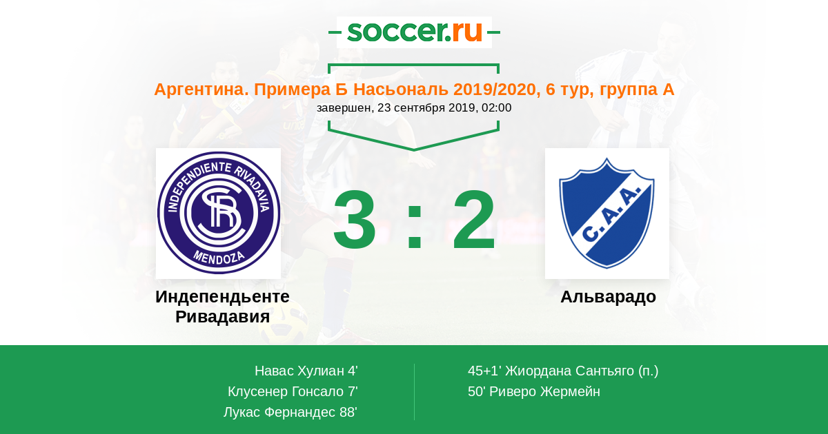 Протокол матча Индепендьенте Ривадавия против Альварадо