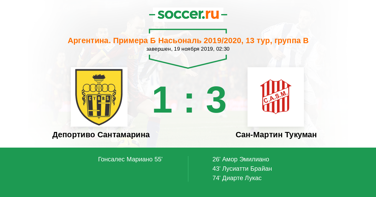 Протокол матча Депортиво Сантамарина против Сан-Мартин Тукуман