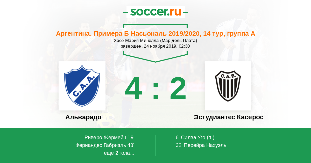 Протокол матча Альварадо против Эстудиантес Касерос