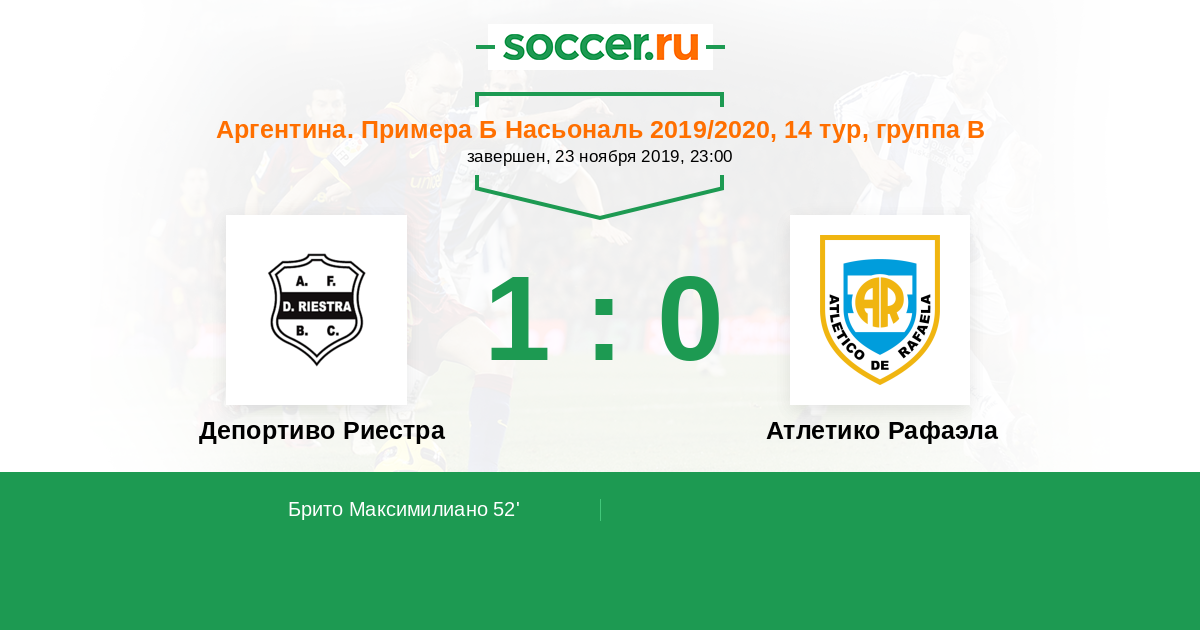Протокол матча Депортиво Риестра против Атлетико Рафаэла