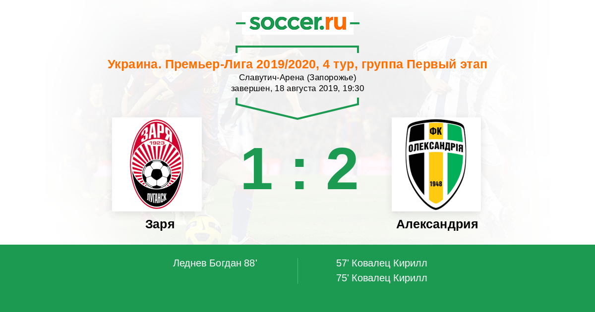 Протокол матча Заря против Александрия