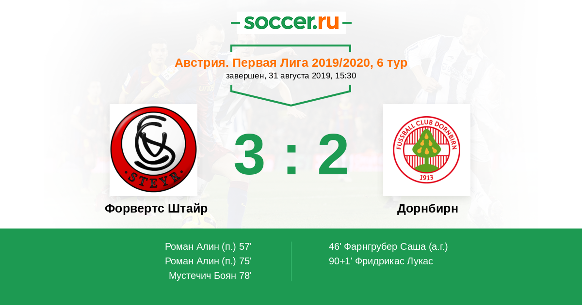 Протокол матча Форвертс Штайр против Дорнбирн