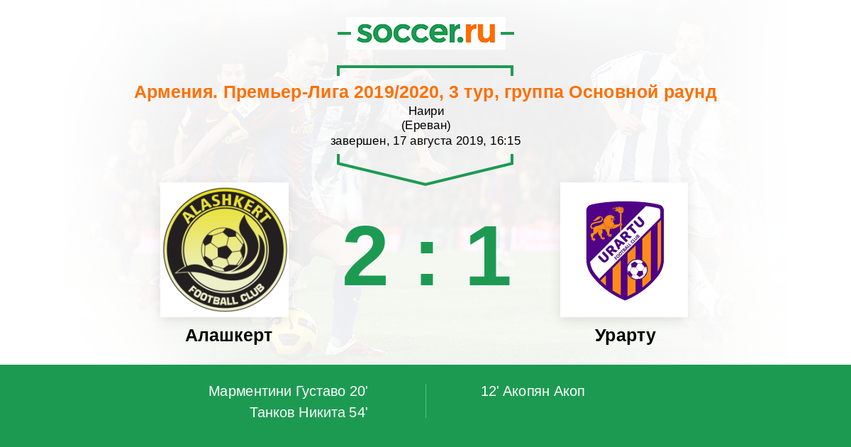 Протокол матча Алашкерт против Урарту