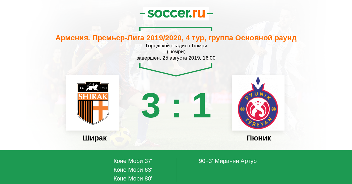 Протокол матча Ширак против Пюник