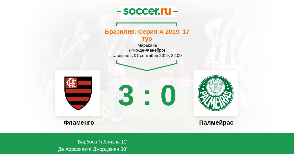 11' (1:0) Барбоса Габриэль (9) (Де Арраскаэта Джорджиан (14))
