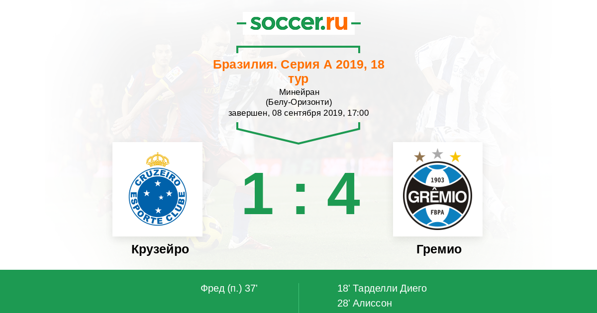 Протокол матча Крузейро против Гремио
