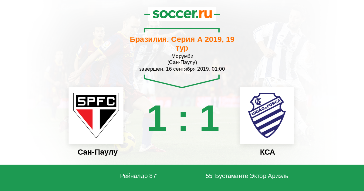 55' (0:1) Бустаманте Эктор Ариэль (18) (дос Сантос Оливейра Налдо (5))