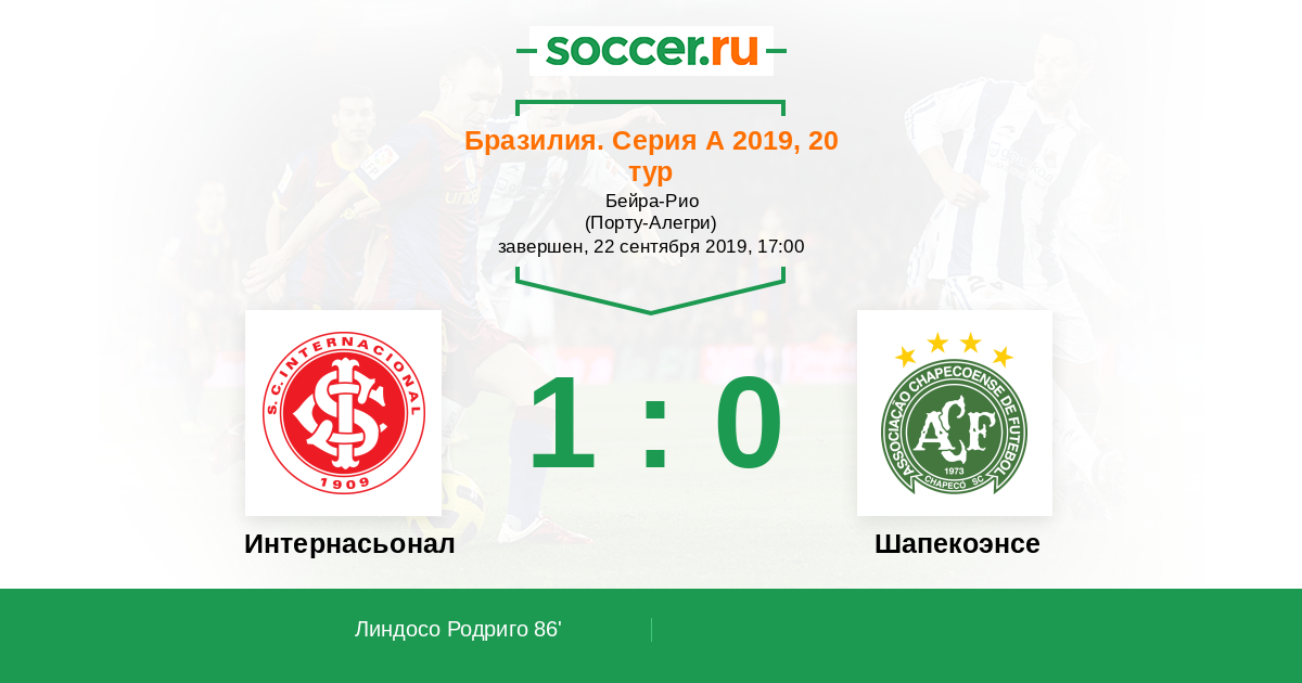 Протокол матча Интернасьонал против Шапекоэнсе