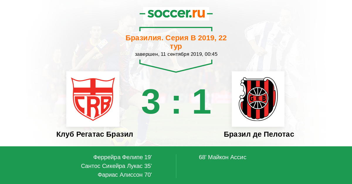Протокол матча Клуб Регатас Бразил против Бразил де Пелотас