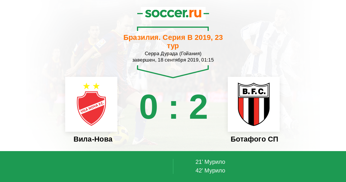 Протокол матча Вила-Нова против Ботафого СП