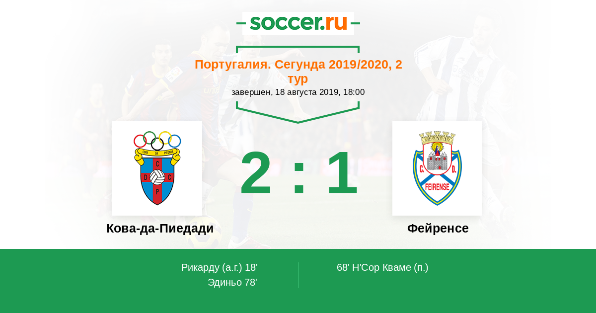 Протокол матча Кова-да-Пиедади против Фейренсе