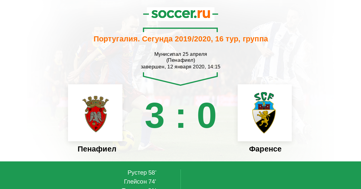 Протокол матча Пенафиел против Фаренсе