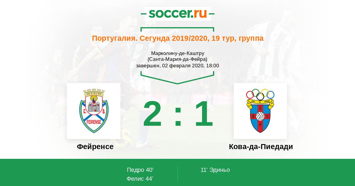 Протокол матча Фейренсе против Кова-да-Пиедади