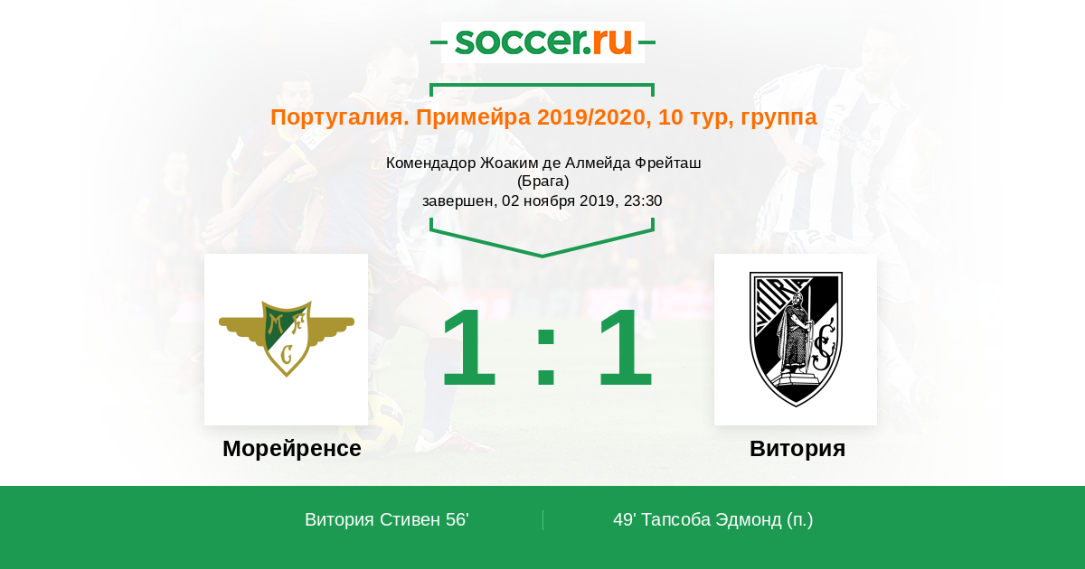 Протокол матча Морейренcе против Витория