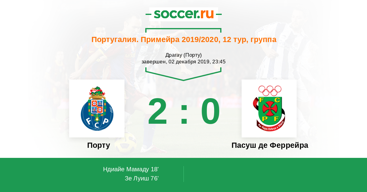 Протокол матча Порту против Пасуш де Феррейра