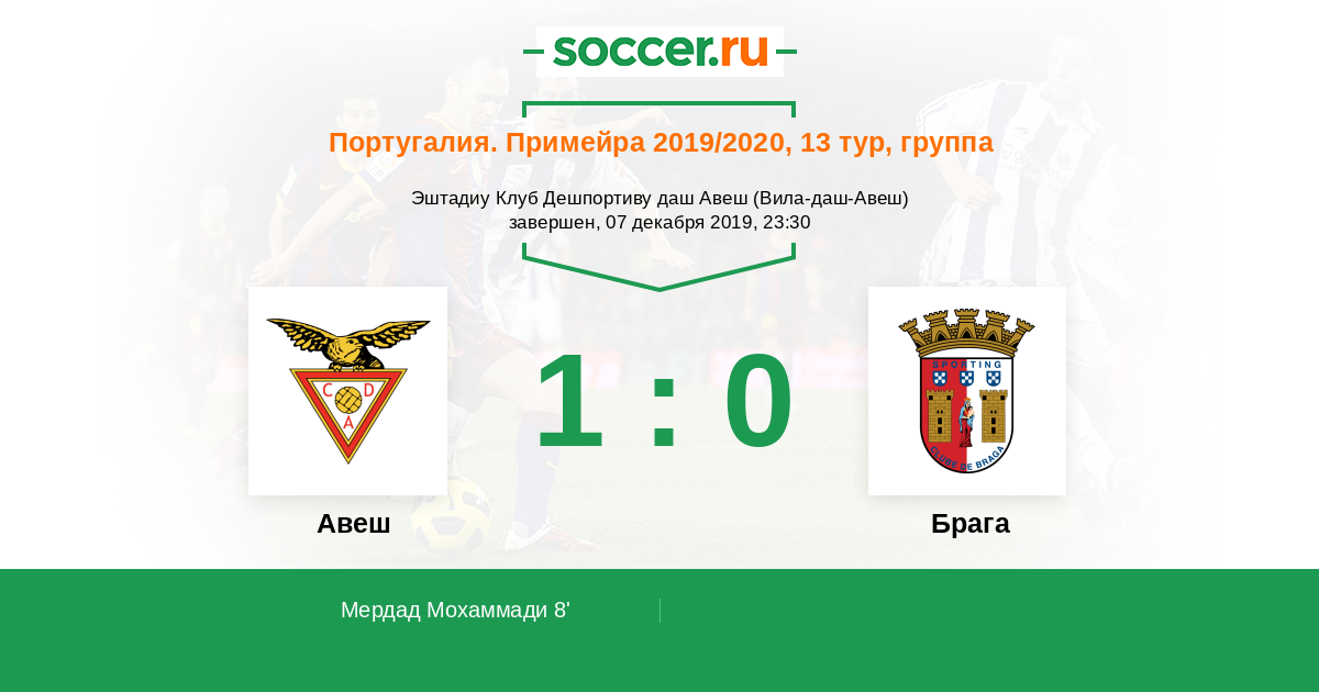 Протокол матча Авеш против Брага
