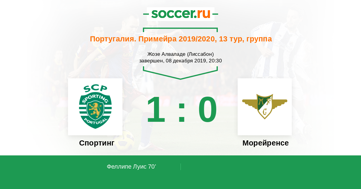 Протокол матча Спортинг против Морейренcе