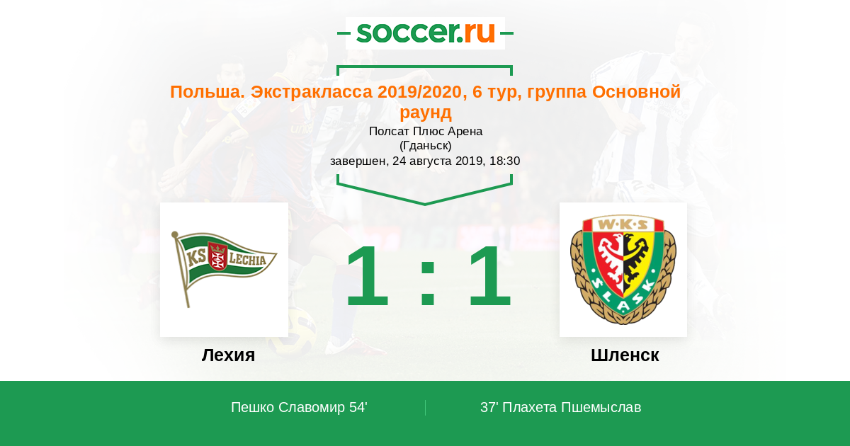 Протокол матча Лехия против Шленск