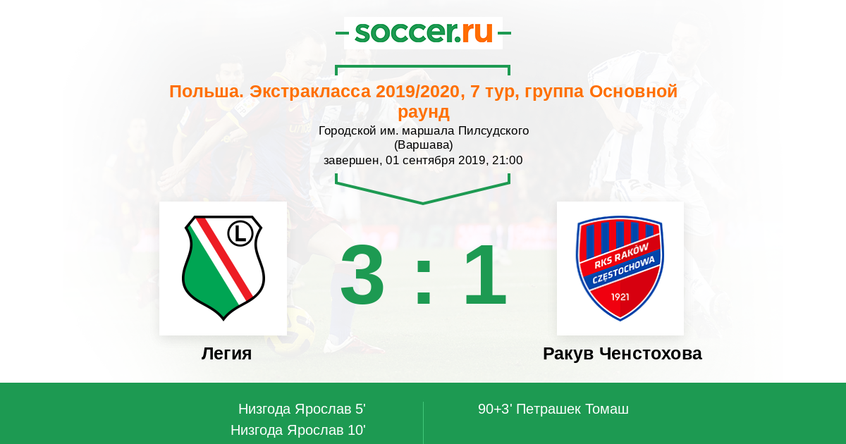 Протокол матча Легия против Ракув Ченстохова