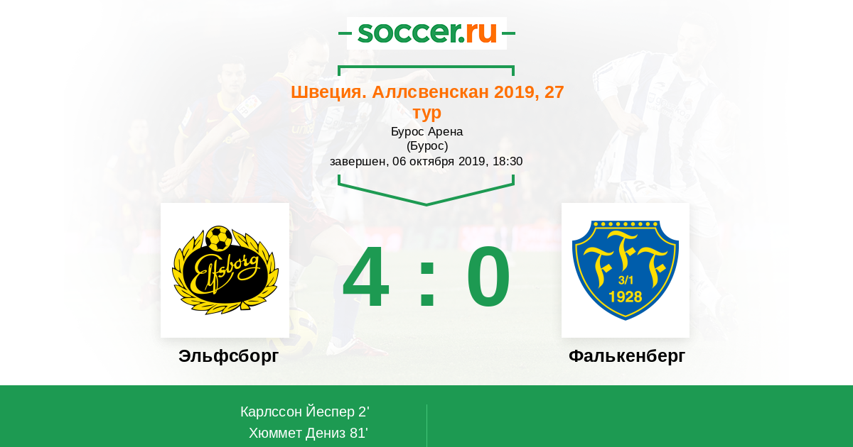 90+1' (3:0) Автогол Карлссон Пер (14)