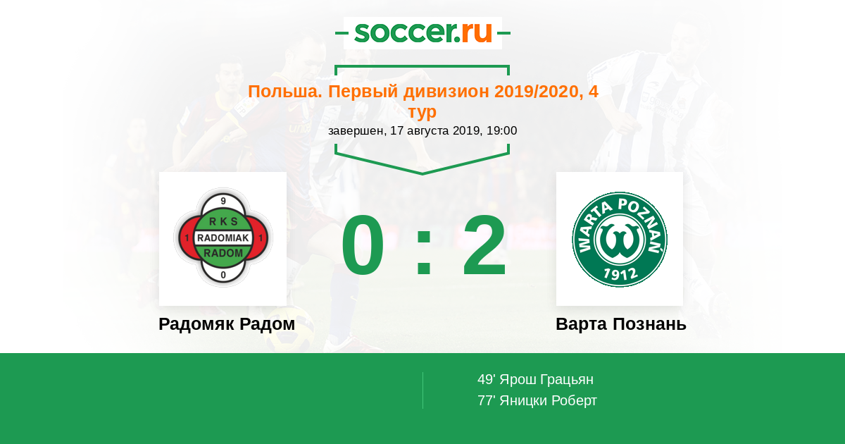Протокол матча Радомяк Радом против Варта Познань