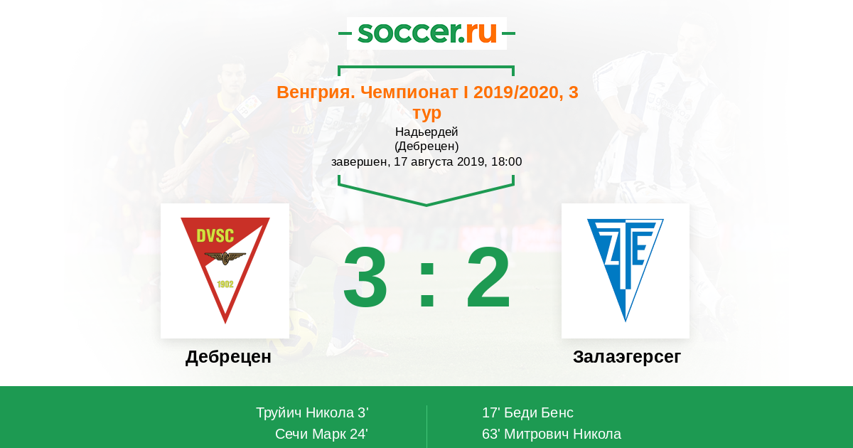 Протокол матча Дебрецен против Залаэгерсег