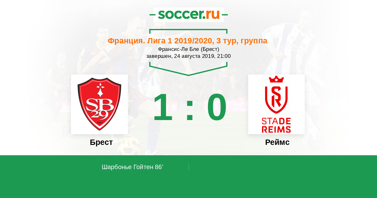Протокол матча Брест против Реймс