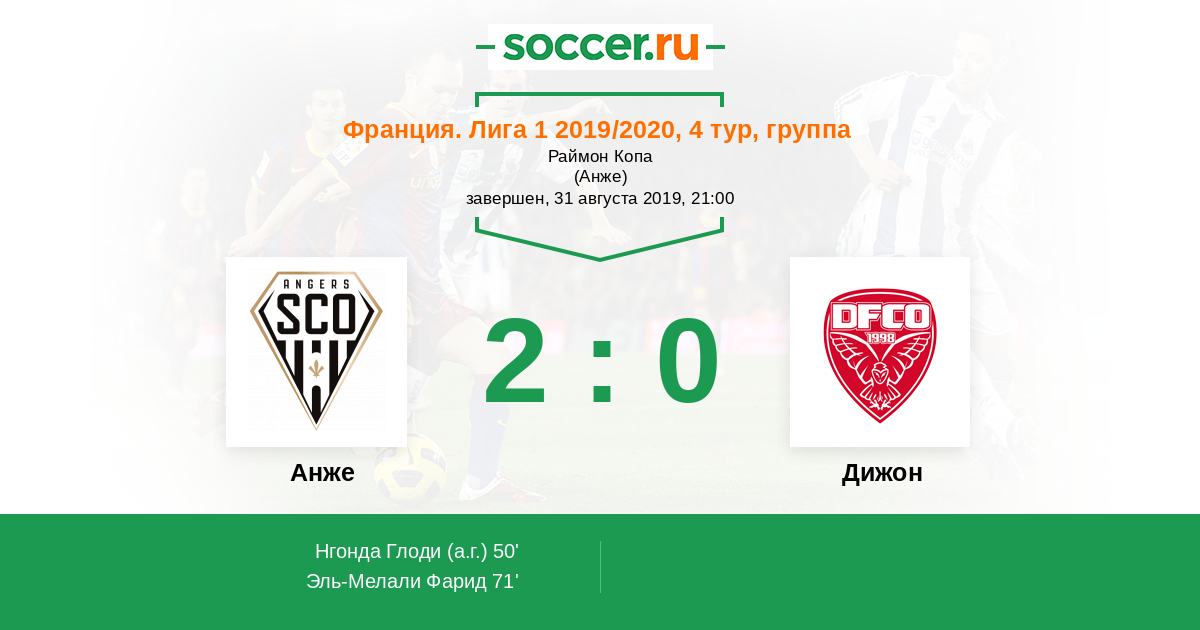 Протокол матча Анже против Дижон