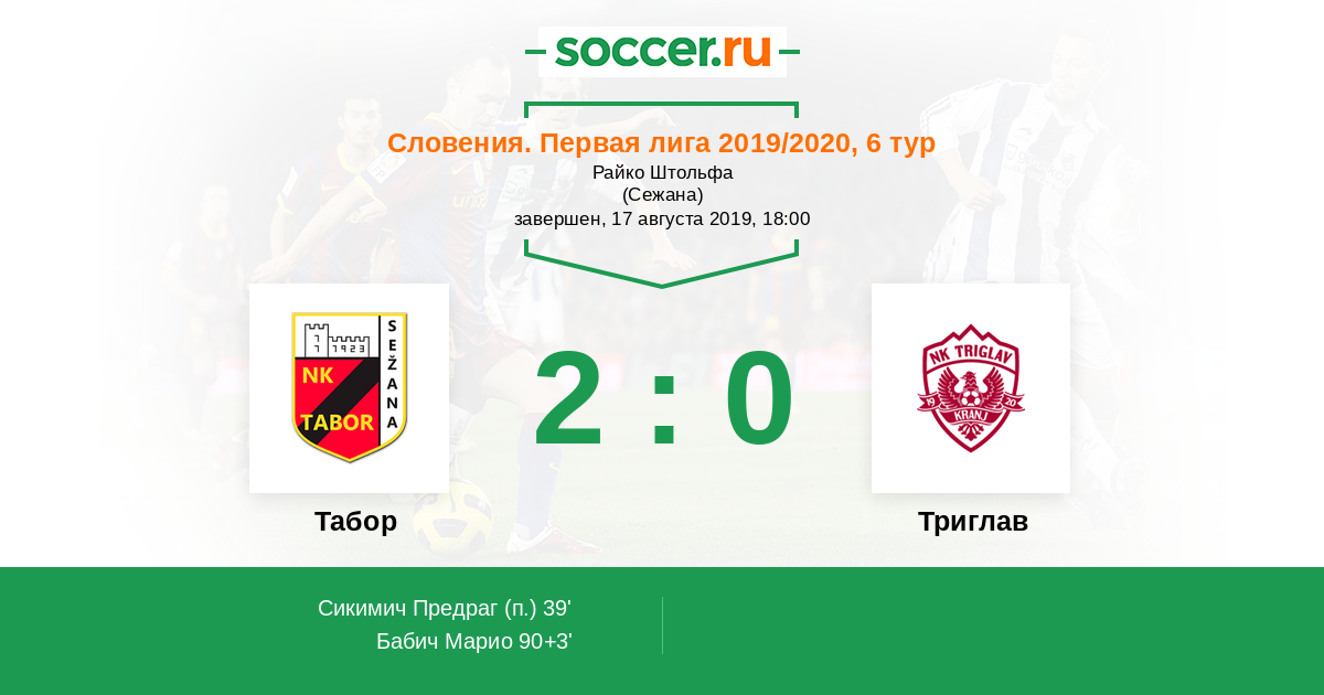Протокол матча Табор против Триглав