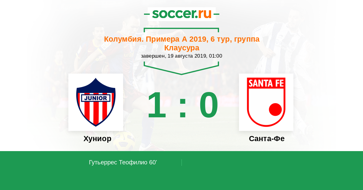 Протокол матча Хуниор против Санта-Фе