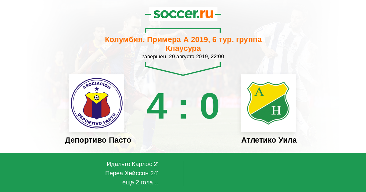 Протокол матча Депортиво Пасто против Атлетико Уила