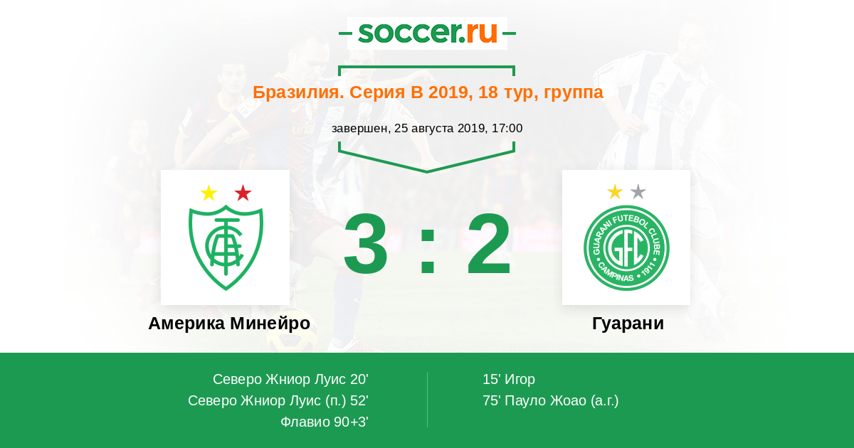 Протокол матча Америка Минейро против Гуарани