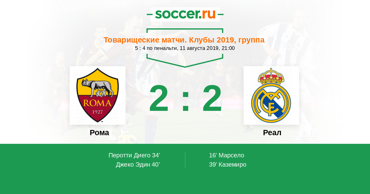 Протокол матча Рома против Реал