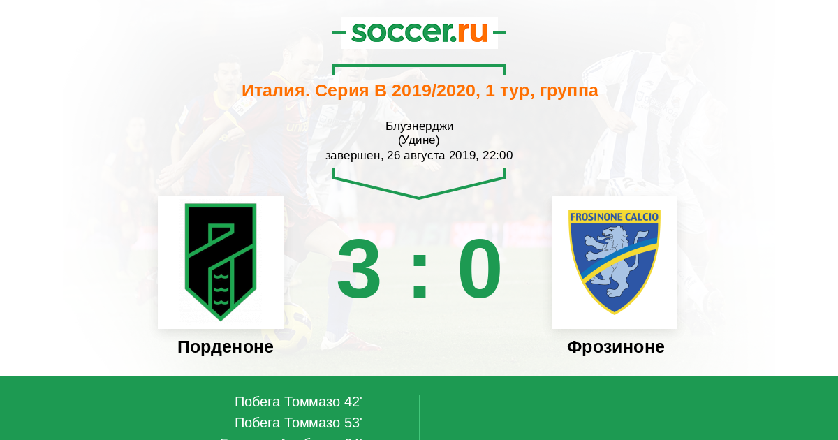 Протокол матча Порденоне против Фрозиноне