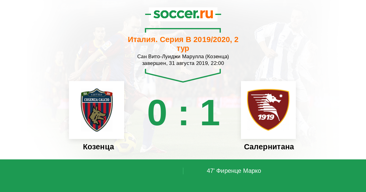 Протокол матча Козенца против Салернитана