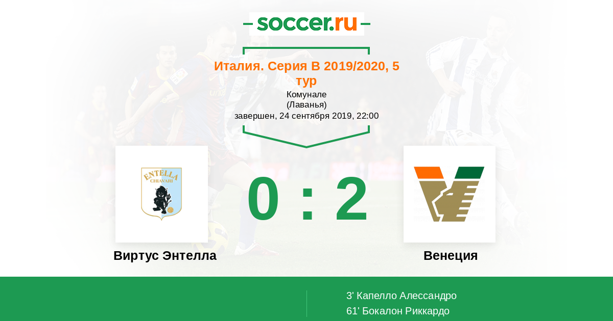 Протокол матча Виртус Энтелла против Венеция