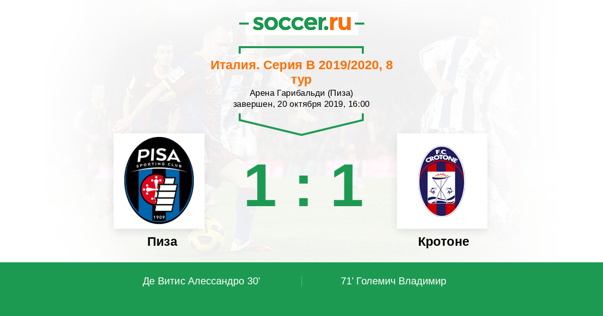 Протокол матча Пиза против Кротоне