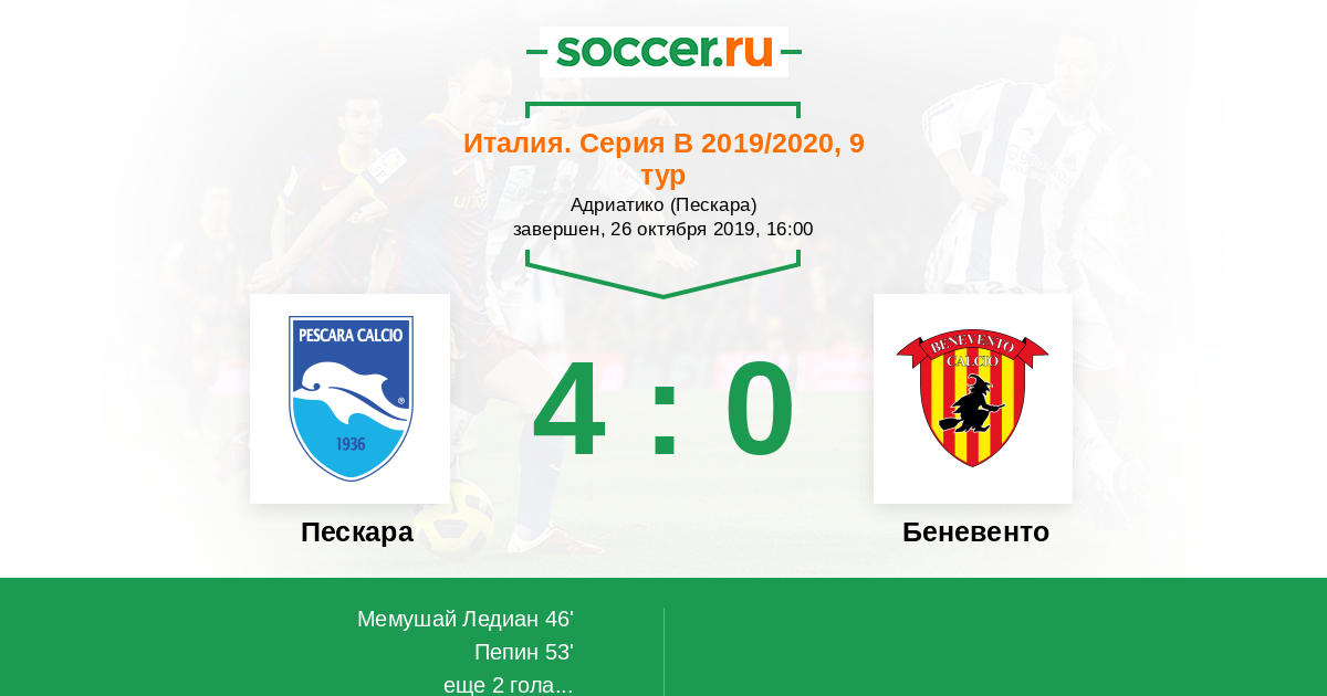 Протокол матча Пескара против Беневенто